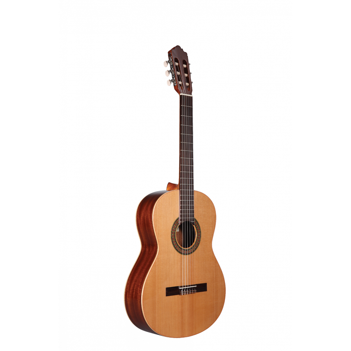 Our entry level N100 in a smaller size suitable for younger beginners starting classical guitar lessons. This gloss finish guitar has a silky tone and simple minimal aesthetic, and features a quality solid top. The top of the guitar is the vital component for generating sound, vibrating as each string is plucked. With solid top guitars, the more this soundboard vibrates, the more this single piece of wood adapts and ‘opens up’ which improves the quality of sound as the guitar ages.