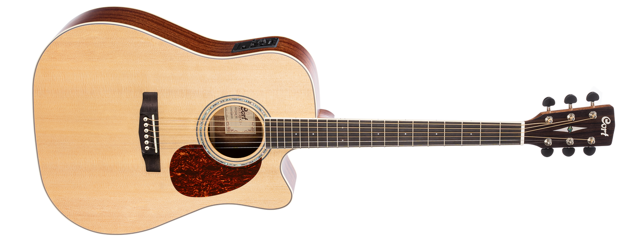 The MR Series represents Cort’s mission to provide the highest quality traditional instruments with superb workmanship and modern features at an unbeatable value. MR710F is a solid sitka spruce top, mahogany back and sides, Ovangkol fingerboard. The classic dreadnaught body has a Venetian cutaway for easy high fret access and is equipped with Fishman Presys electronics to deliver the MR’s natural acoustic sound to an amplification system for both live and recording applications.