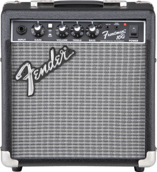 Frontman® amps deliver quality tone at a great price, with custom-voiced built-in overdrive for great tone and the unmistakable Fender® Blackface™ look. The 10-watt Frontman 10G features a 6” Special Design speaker and a adjustable gain control that rocks guitar tones from tube-emulated overdrive to full-strength ultra-saturated distortion - perfect for blues, metal and the famous Fender clean tone. Closed-back design gives a heavier bass response, 1/8” input lets you play along with media players, and 1/8” headphone output is great for silent practice.