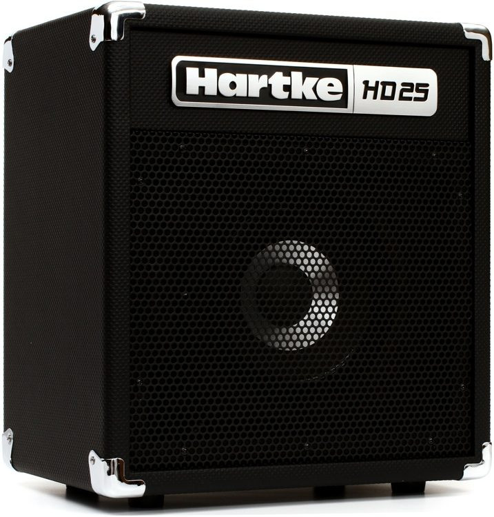 The HD25 (25 watts, 8" driver) employs Hartke’s patented HyDrive Speaker Technology that offers a carefully crafted hybrid (half paper, half aluminum) cone bass speaker. By combining the warmth and roundness of paper with the punch and attack of aluminum, the HyDrive design produces serious tone that is ideal for bass players of all genres and styles.