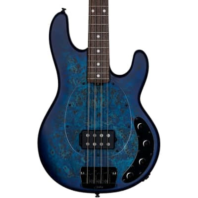 This BFR-inspired Ray34 features the iconic sound of the Music Man Stingray with an updated look; the exotic poplar burl gives a brand new look to the classic bass. Complemented by the roasted maple neck, 5-way switching, and a transparent pickguard, this Ray34 is sure to be a stand out in any collection.