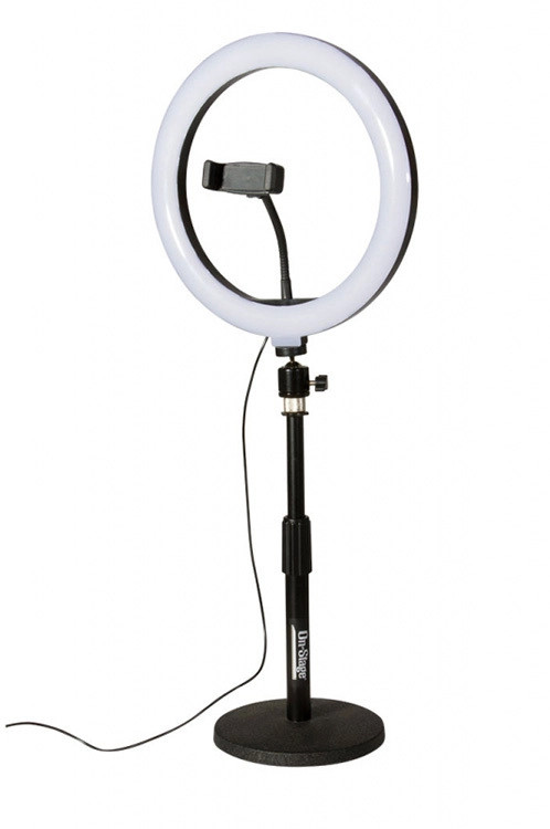 Two ring-light stands-one for desktops and one for use on the floor-each adjust in height for precise lighting of sitting or standing subjects.